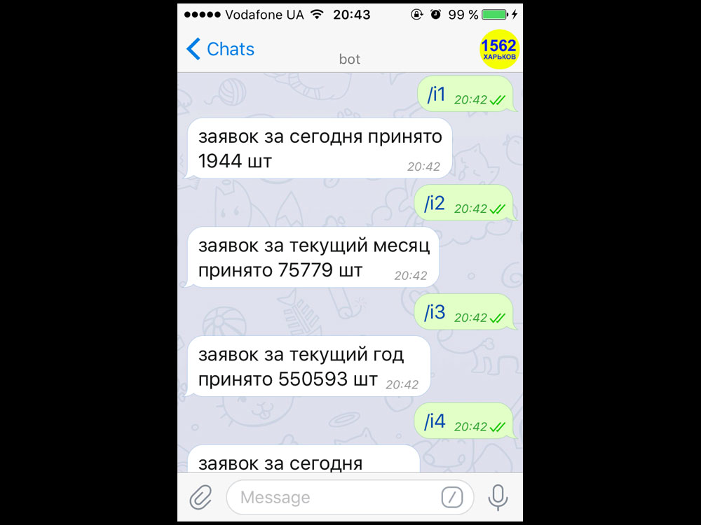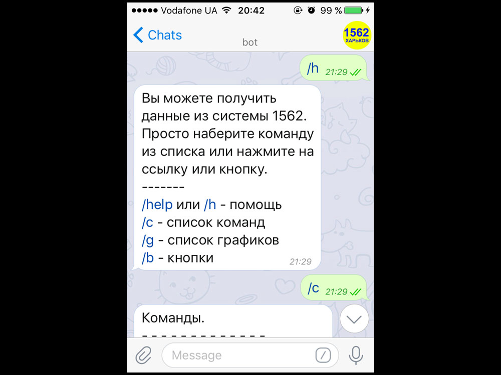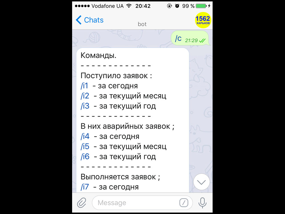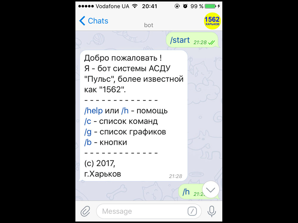 Telegram-bot for City Information System "1562" in Kharkov, Ukraine (2017)