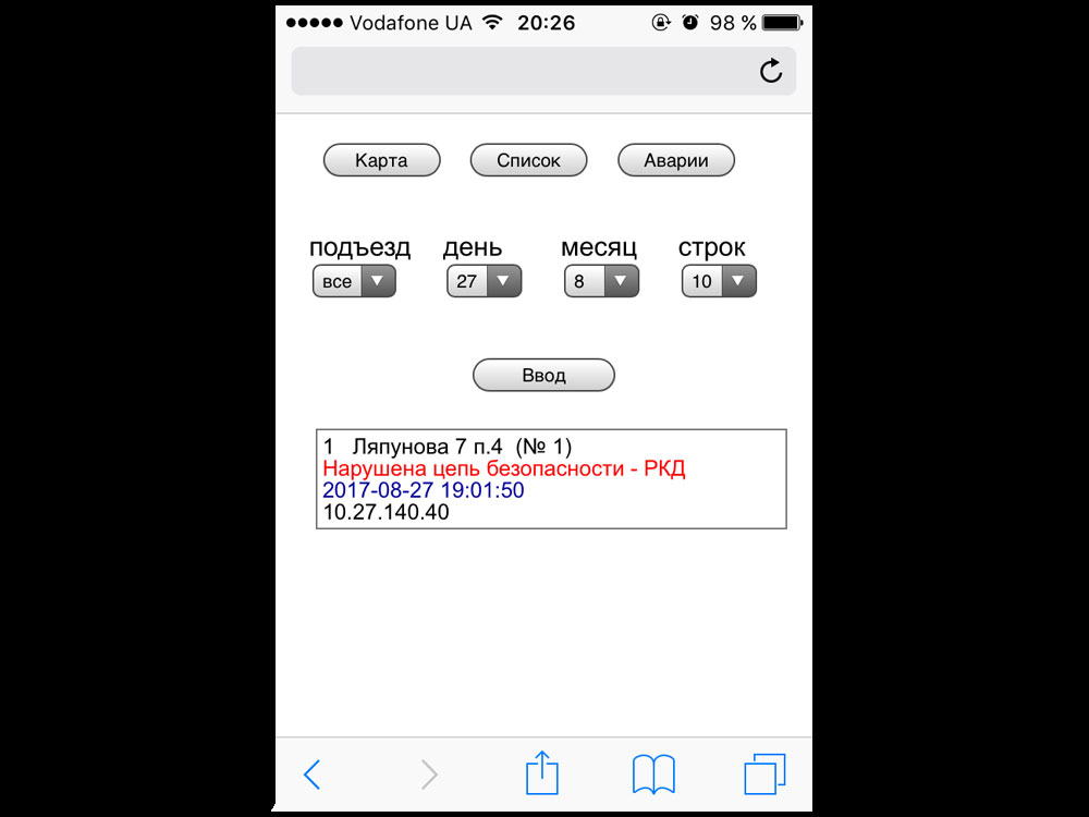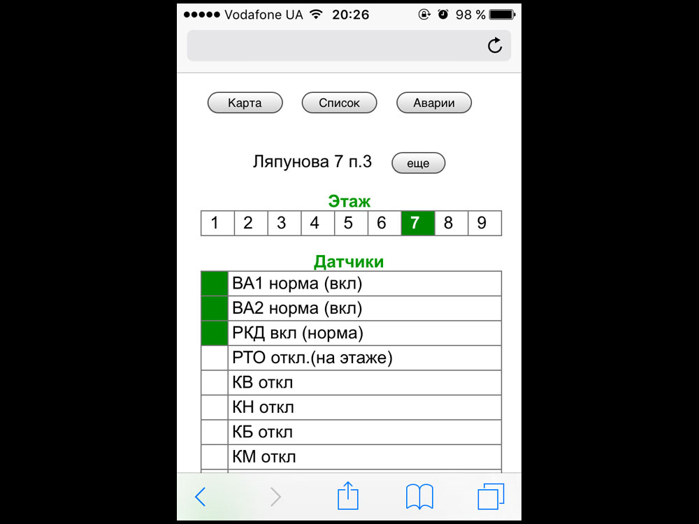 Mobile version of the prototype of the city elevator control system in Kharkov, Ukraine (2017)